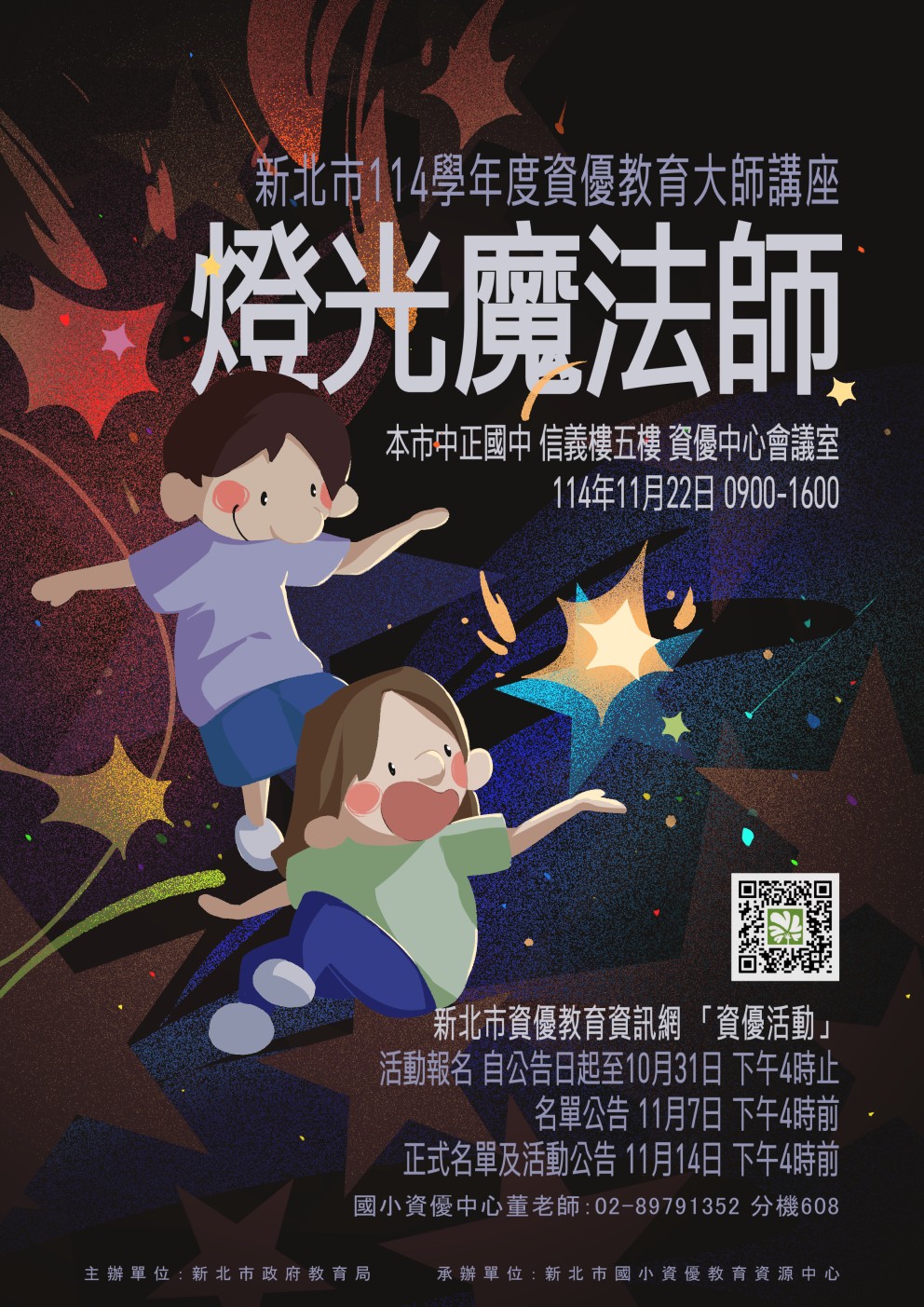 轉知 : 新北市114學年度資優教育大師講座《燈光魔法師》實施計畫