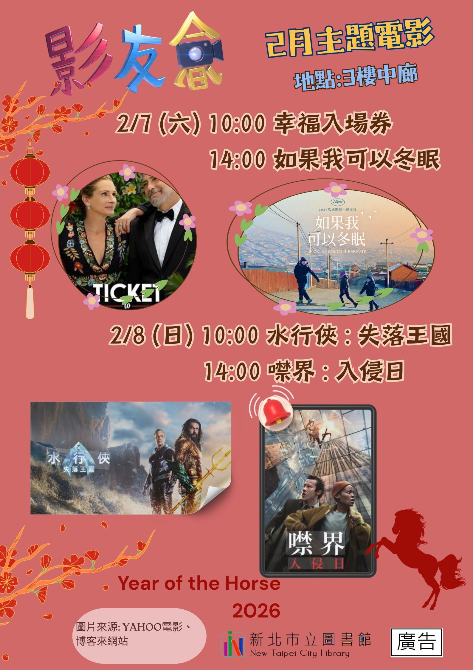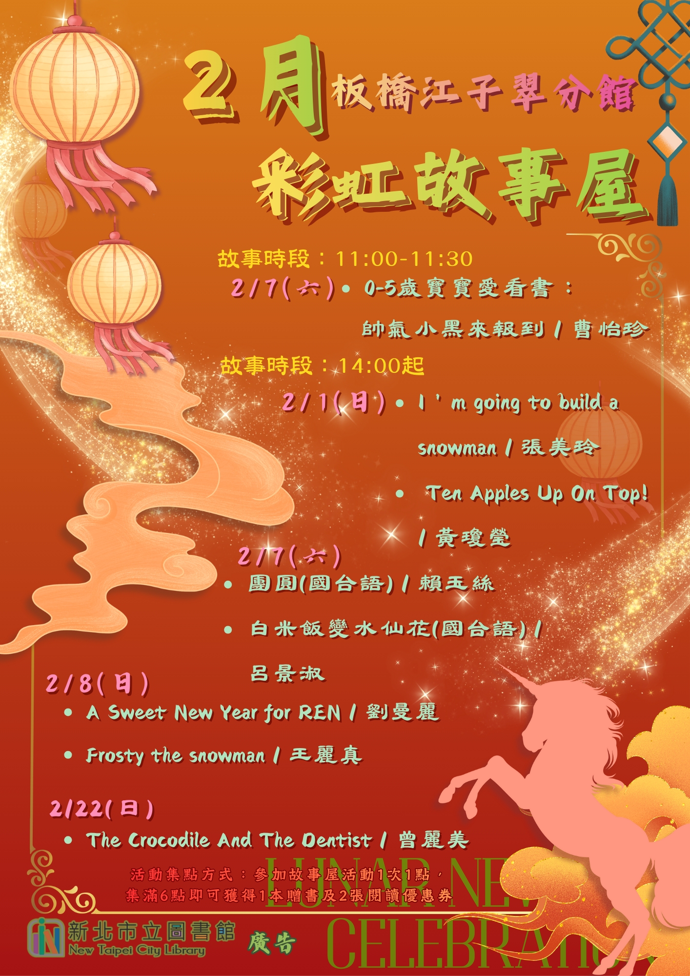 新北市立圖書館板橋江子翠區等4間分館、圖書閱覽室於115年2月辦理相關閱讀推廣活動